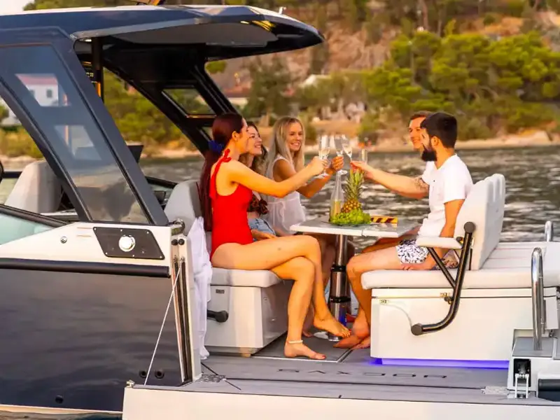 Elevate your day with this 32′ Saxdor boat for up to 13 guests. Cruise Miami Beach, hit sandbars, swim, and enjoy a stylish, high-performance escape…