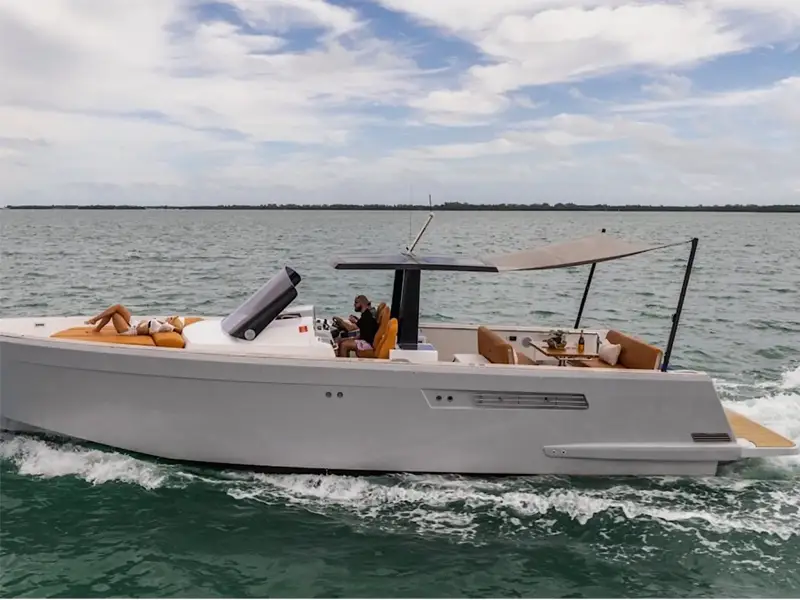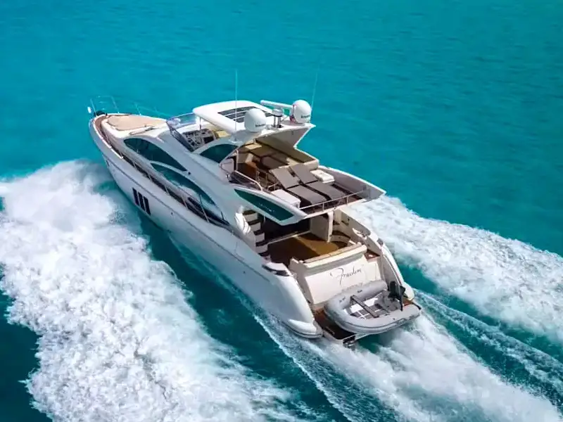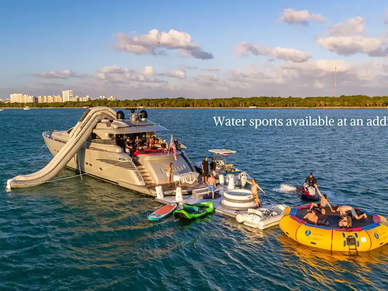Step aboard this sleek 38′ Pardo for a stylish Miami Beach escape. Lounge on sun pads, enjoy music and drinks, and cruise with crew for a perfect day…