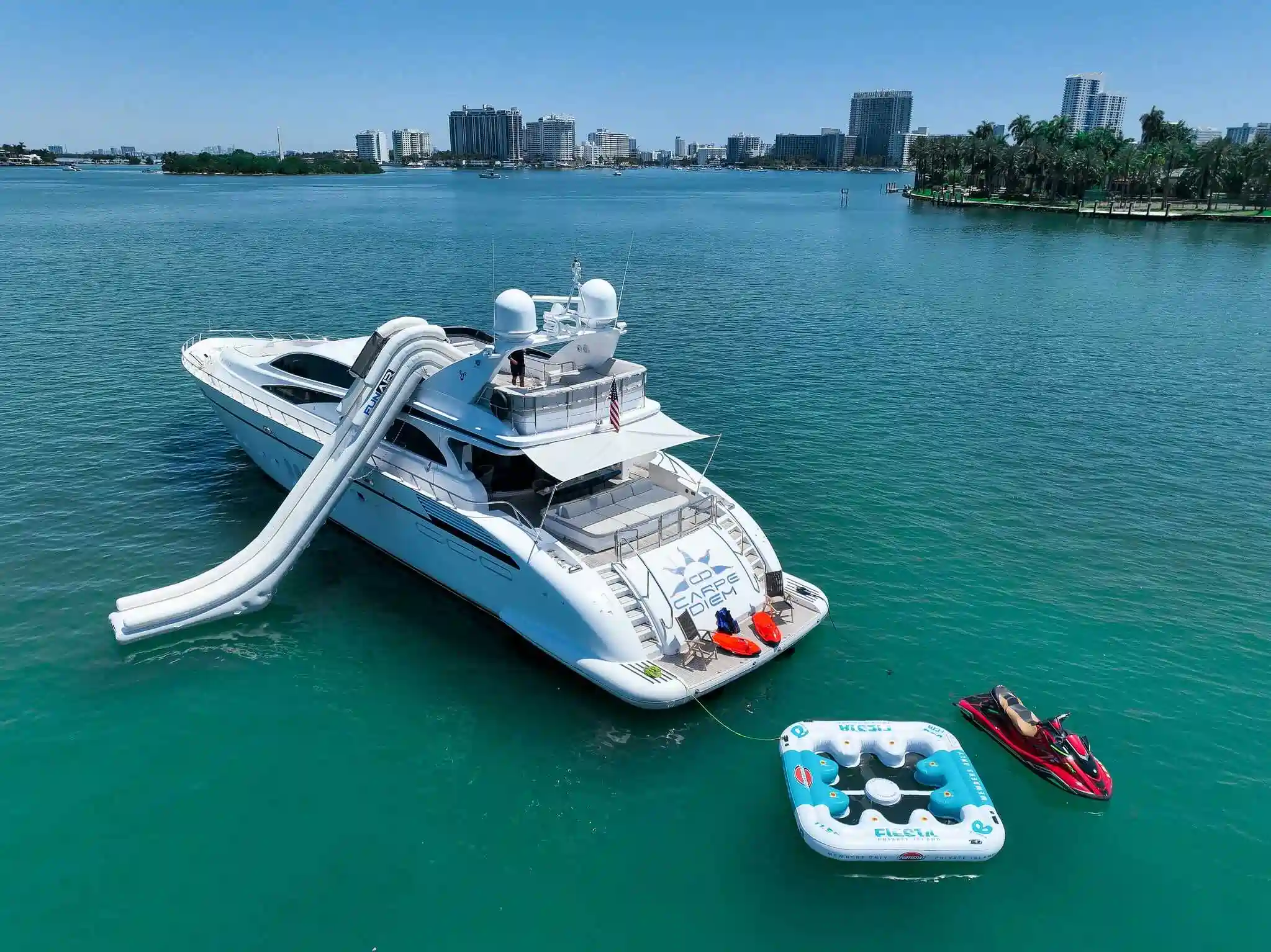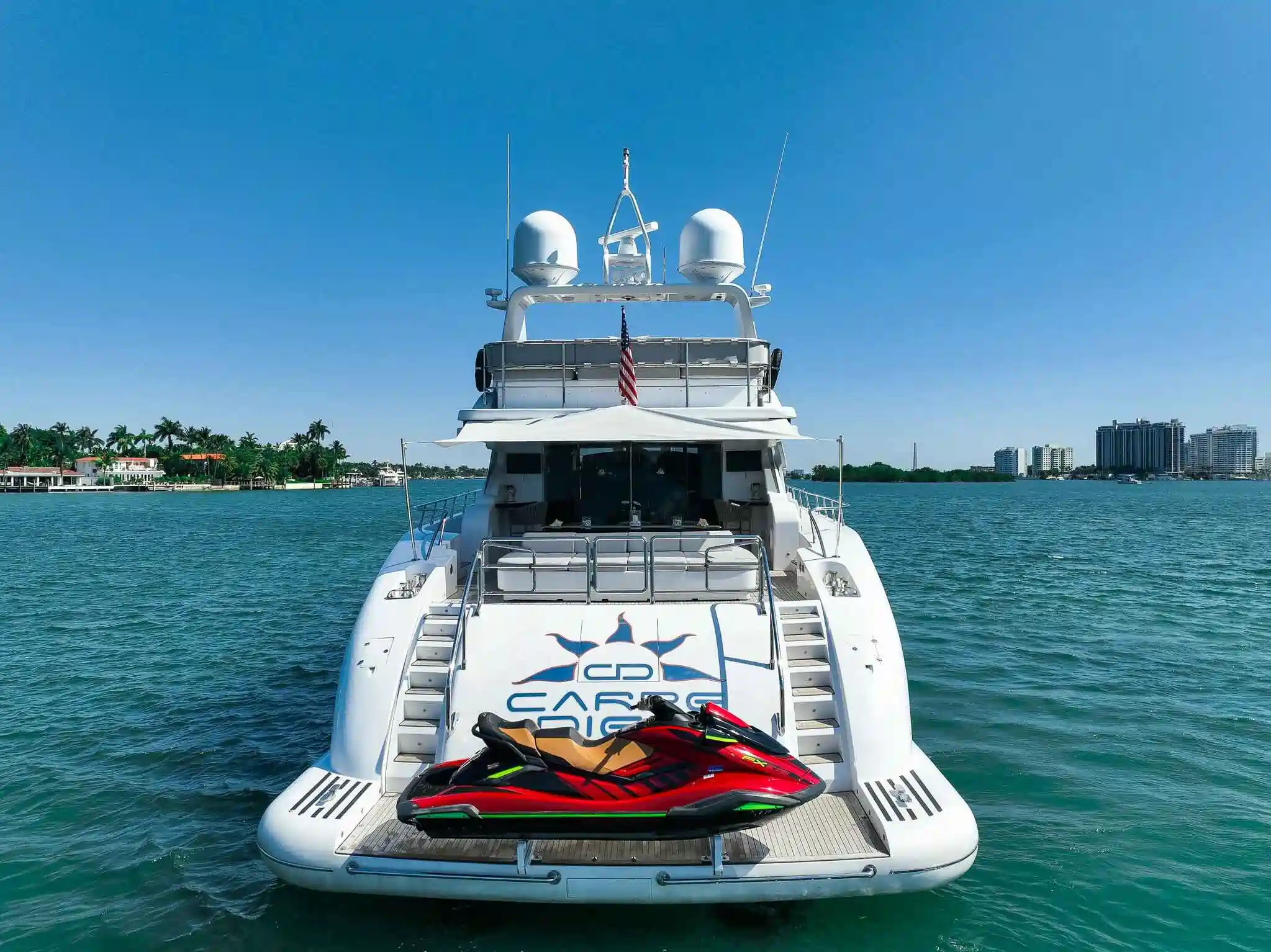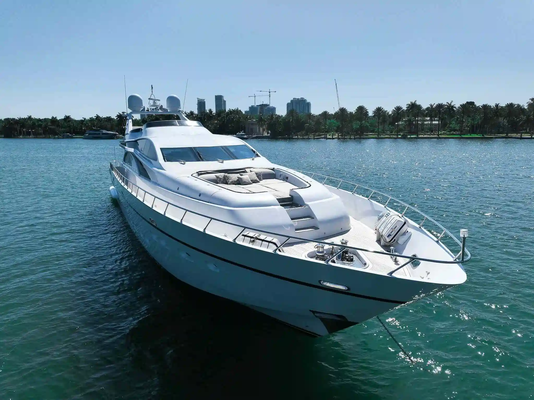 Step aboard the iconic 105’ Leopard, a high-speed favorite for Miami boat charters combining Italian design with powerful performance. Cruise through the turquoise waters of Biscayne Bay while enjoying sweeping views of the Miami skyline and glamorous coastline. This premium option for boat rentals in Miami delivers expansive sun decks perfect for lounging, social gatherings, or anchoring at vibrant sandbars. Whether you’re swimming in crystal-clear waters or passing the luxury estates of Star Island, every moment is elevated through unforgettable water activities in Miami. Explore more experiences with Miami boat charters tailored for luxury seekers.