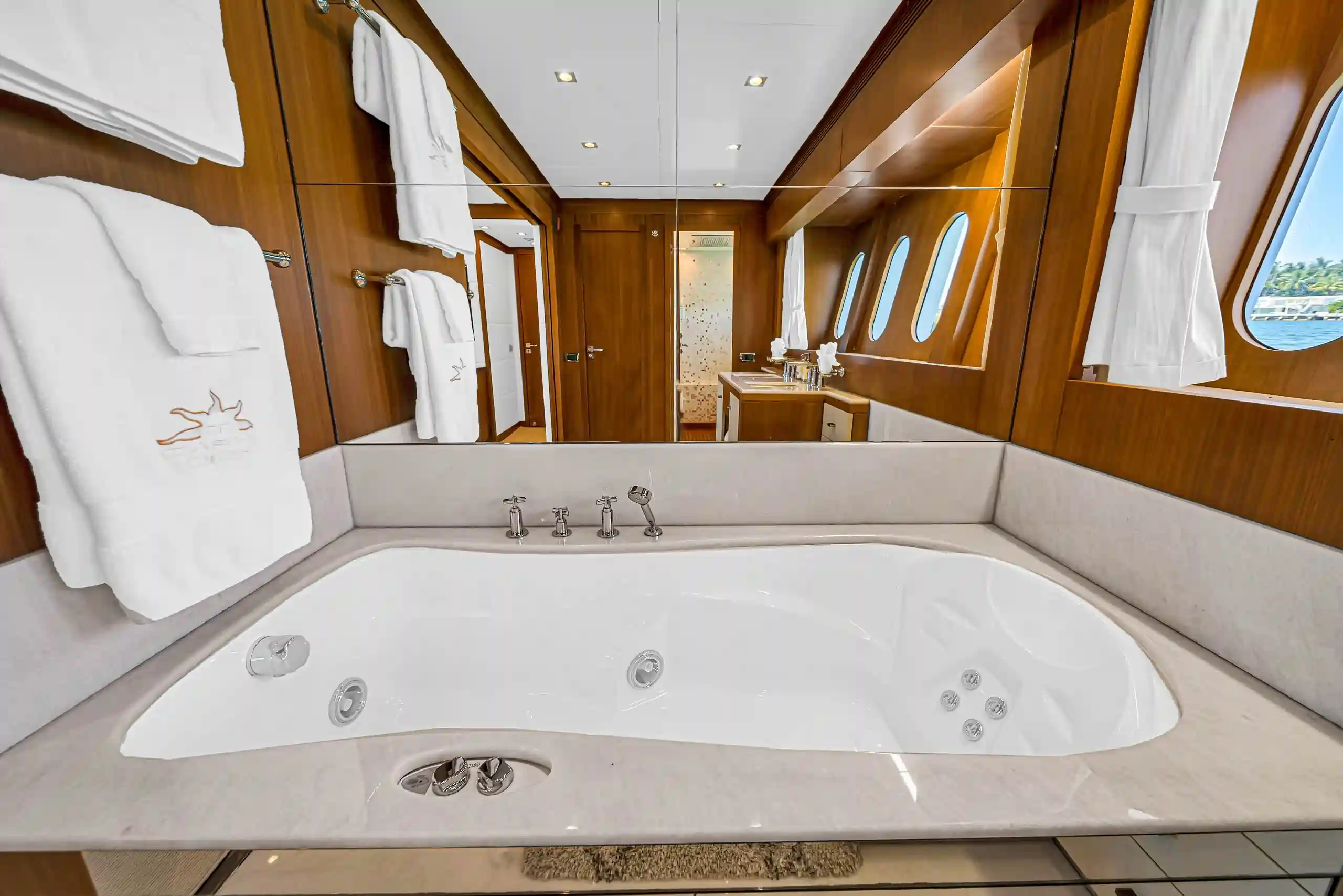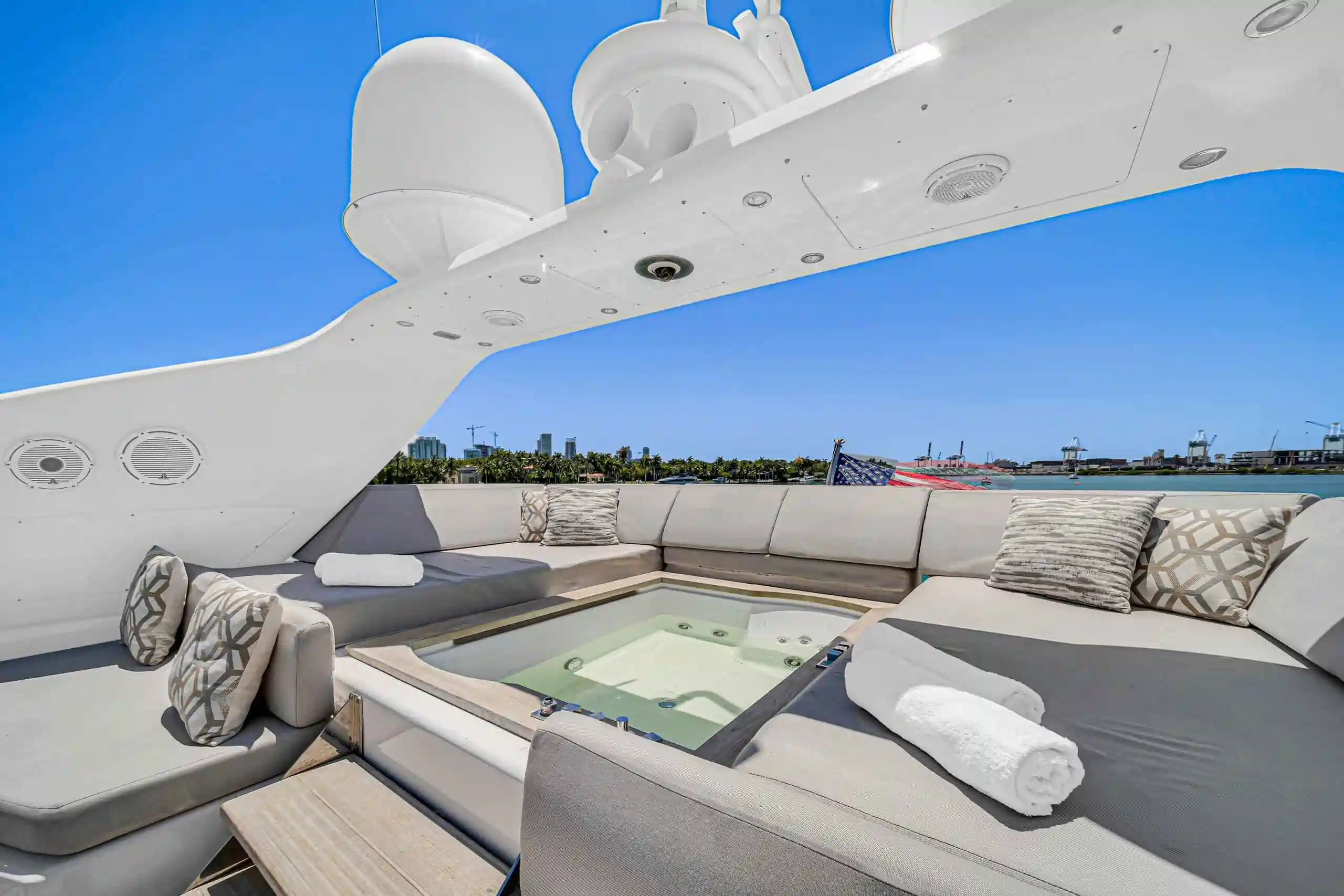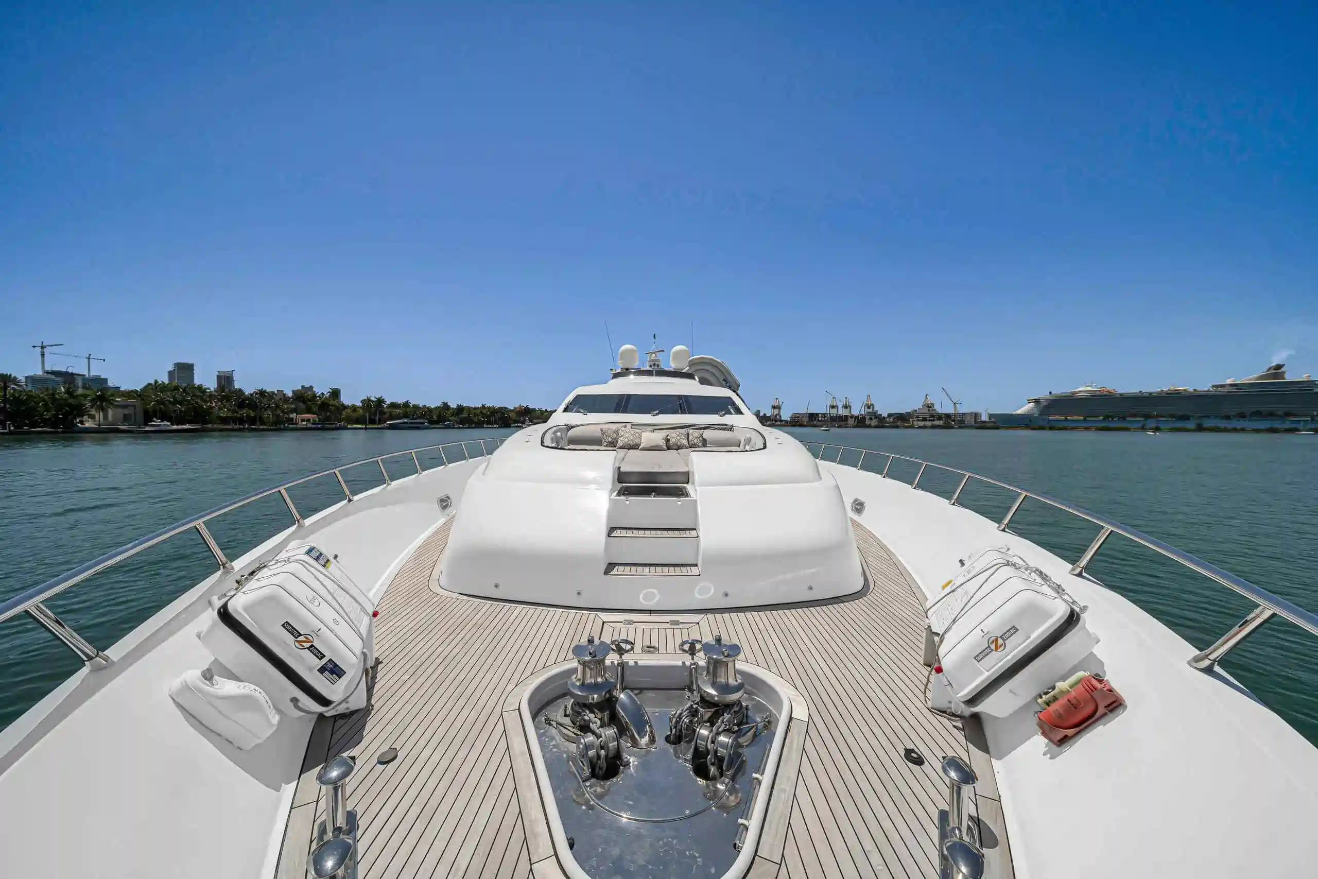 Step aboard the iconic 105’ Leopard, a high-speed favorite for Miami boat charters combining Italian design with powerful performance. Cruise through the turquoise waters of Biscayne Bay while enjoying sweeping views of the Miami skyline and glamorous coastline. This premium option for boat rentals in Miami delivers expansive sun decks perfect for lounging, social gatherings, or anchoring at vibrant sandbars. Whether you’re swimming in crystal-clear waters or passing the luxury estates of Star Island, every moment is elevated through unforgettable water activities in Miami. Explore more experiences with Miami boat charters tailored for luxury seekers.