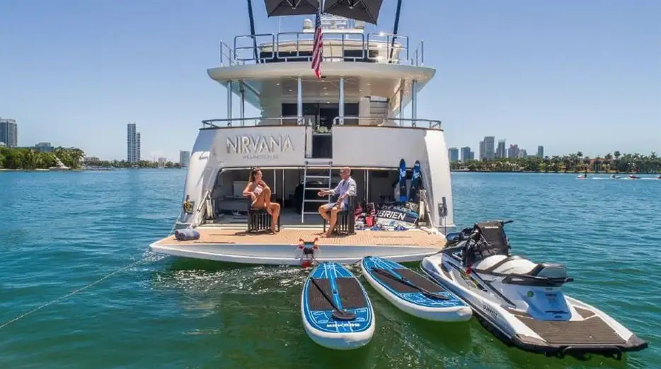 Step aboard the impressive 110β Horizon, a refined choice for Miami boat charters built for comfort, space, and unforgettable days on the water. Cruise through the crystal-clear waters of Biscayne Bay while enjoying panoramic views of the Miami skyline and luxury waterfront estates. This premium option for boat rentals in Miami features expansive decks ideal for sunbathing, social gatherings, or anchoring at vibrant sandbars. Whether youβre swimming in turquoise waters or passing Star Island, every moment is elevated through immersive water activities in Miami. Explore more unforgettable experiences with Miami boat charters tailored for luxury cruising.
