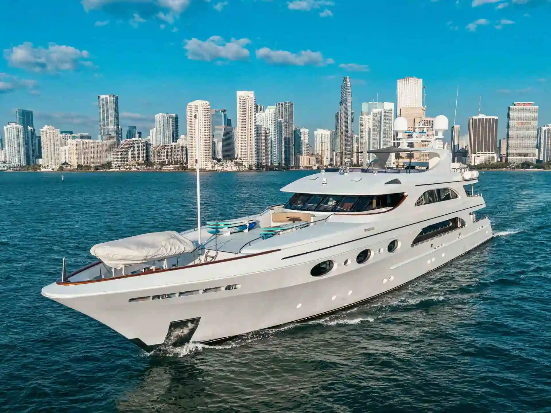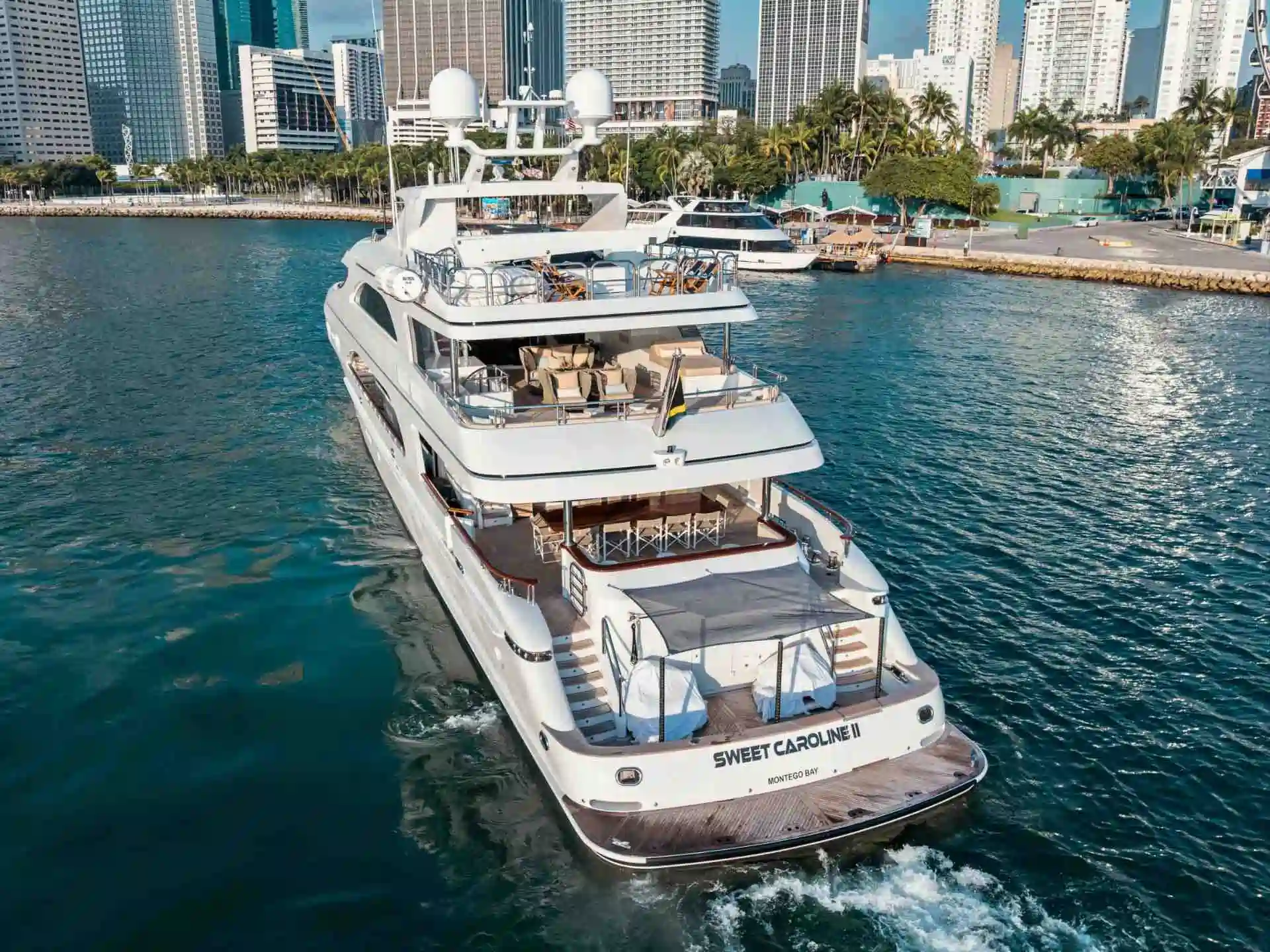 Step aboard the iconic 166β Trinity, one of the most impressive vessels in Miami boat charters, designed for ultimate space, comfort, and celebration. Cruise across the sparkling waters of Biscayne Bay while enjoying panoramic views of the Miami skyline and exclusive waterfront estates. This elite option for boat rentals in Miami offers expansive multi-deck layouts perfect for large gatherings, sunbathing, or anchoring at vibrant sandbars. From relaxed cruising to high-energy celebrations and immersive water activities in Miami, every moment is elevated onboard this floating luxury estate. Explore more unforgettable journeys with Miami boat charters tailored to your experience.