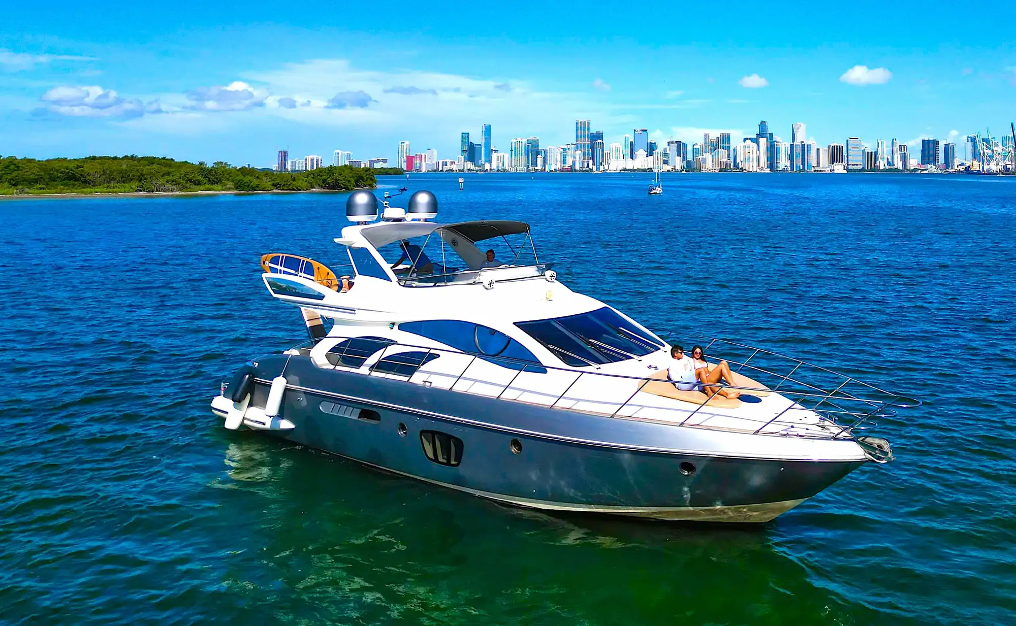 Experience the 57β Azimut yacht within premium Miami boat charters offering refined luxury cruising across Biscayne Bay. This vessel is ideal for boat rentals in Miami, combining modern Italian design, spacious decks, and smooth performance on turquoise waters. Guests enjoy water activities in Miami such as sandbar stops, swimming, and cruising past Star Island and Downtown Miami skyline. Relax with premium service and coastal views during unforgettable journeys. Book via Miami boat charters for private experiences along Miamiβs coastline, perfect for luxury escapes and celebrations on the water.