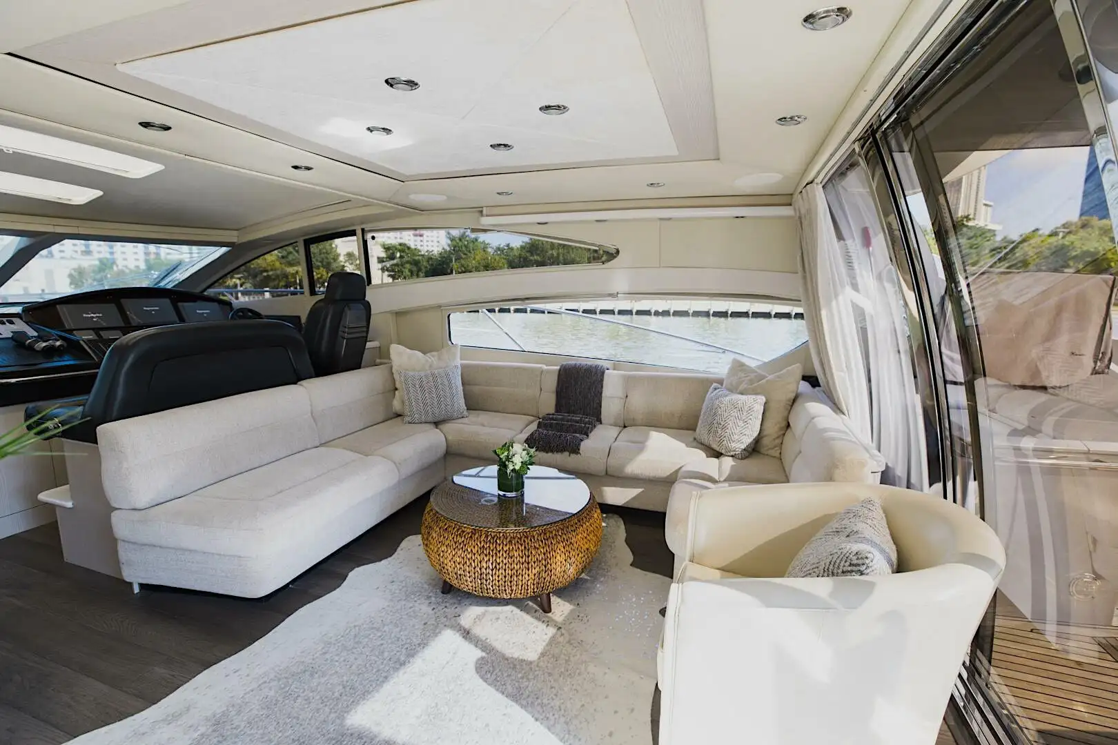 The **72 Sunseeker** defines modern **Miami boat charters**, offering an elite escape for those seeking premium **boat rentals in Miami** with style and performance. Glide across Biscayne Bay while enjoying breathtaking views of downtown skyscrapers, Palm-lined islands, and celebrity waterfront estates. Experience exciting **water activities in Miami** including swimming stops, sandbar relaxation, and smooth coastal cruising. This yacht is designed for comfort, featuring luxury seating areas, entertainment spaces, and panoramic views throughout the journey. Click here to explore additional Boat Charters in Miami & elevated on-the-water experiences.