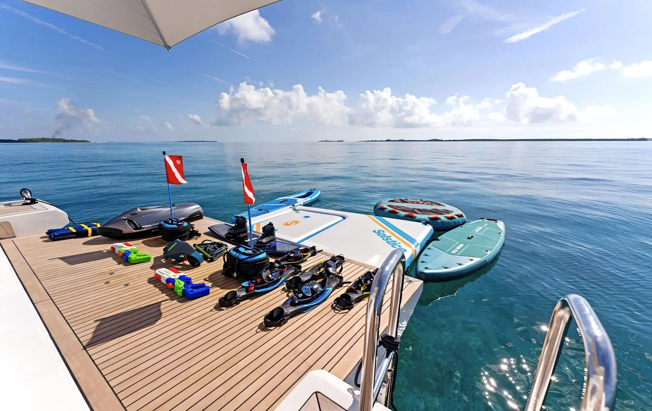 - WATER TOYS: 2 SeaBobs, Body Board, Drone, Inflatable Dock, Inflatable Pool, Jetski, Paddle Board, Tender, Towable Tube, Water Skis